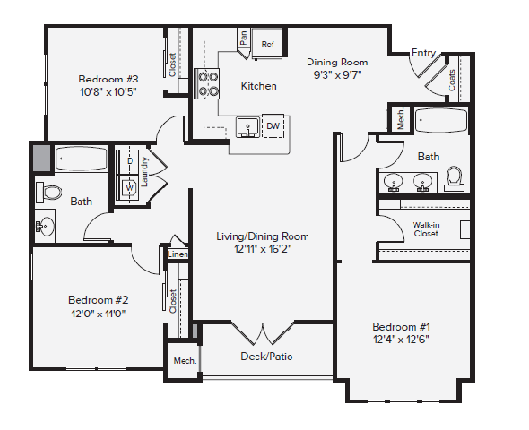 Apartment Model: Three Bedroom Two Bathroom with LoftFrom $3,3753 Bedroom, 2 Bath, 1508 sq ftAvailable January 16, 2026![]()