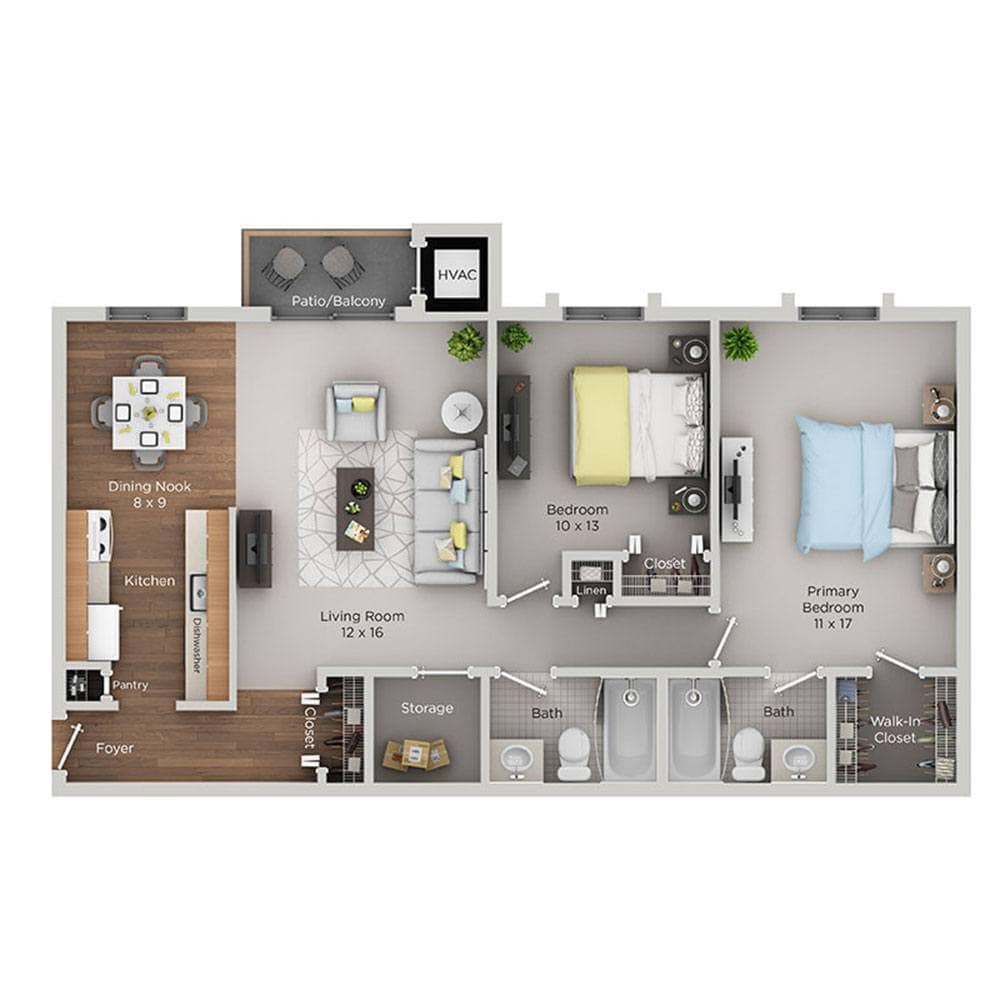 2 Beds, 2 Baths, 900 sq ftAvailable NowModel Gallery