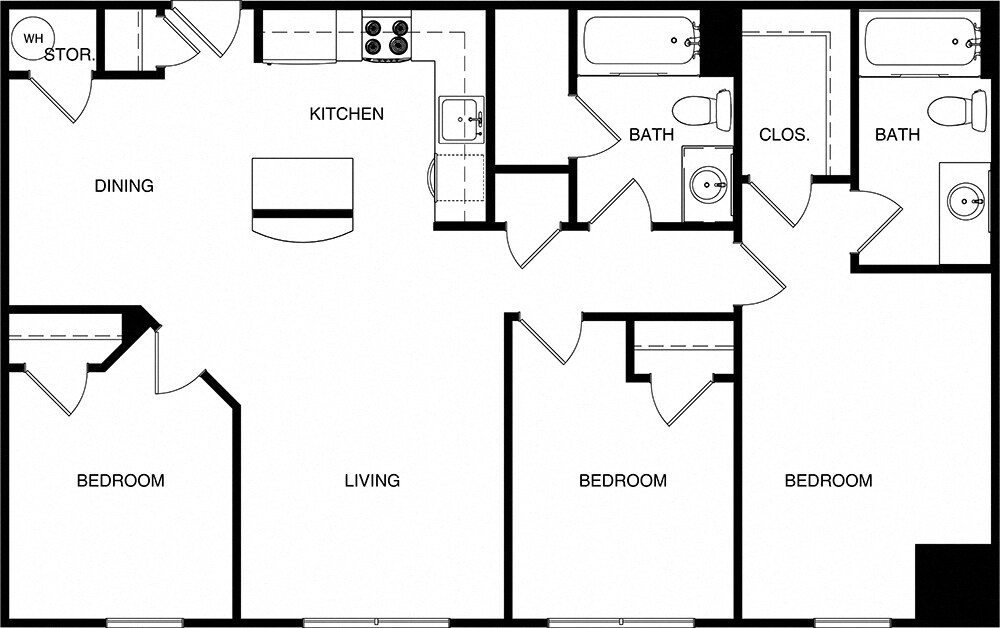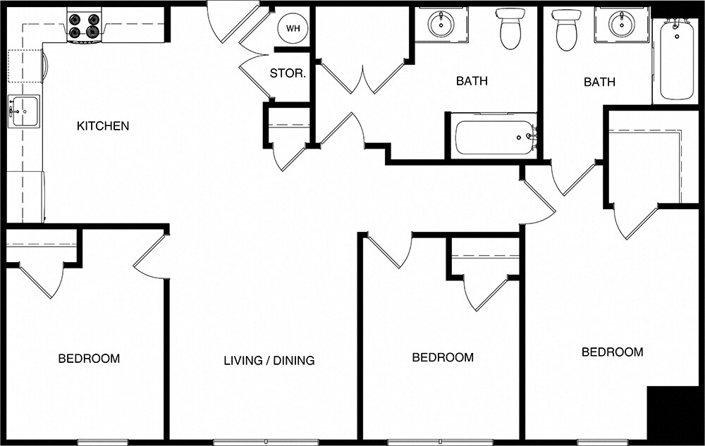 3 Beds, 2 Baths, 1100-1200 sq ftModel Gallery