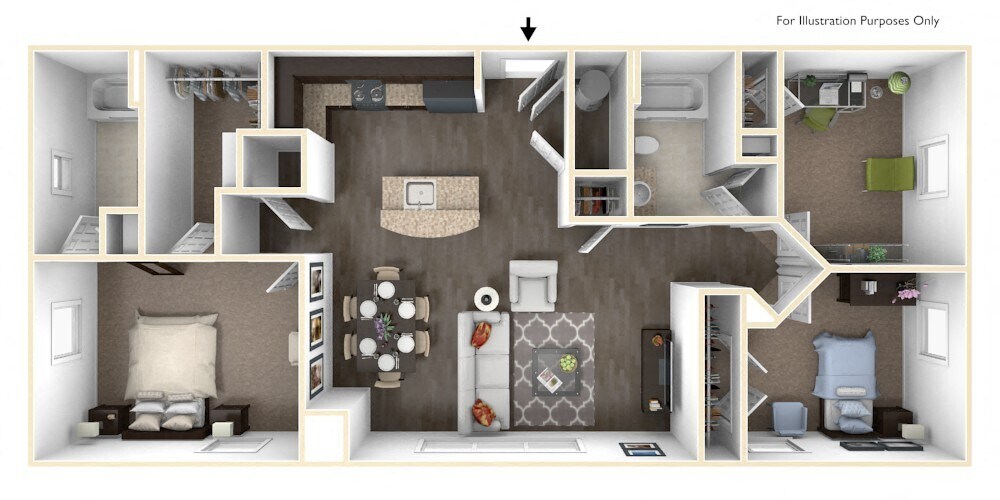 3 Beds, 2 Baths, 1115-1200 sq ftModel Gallery