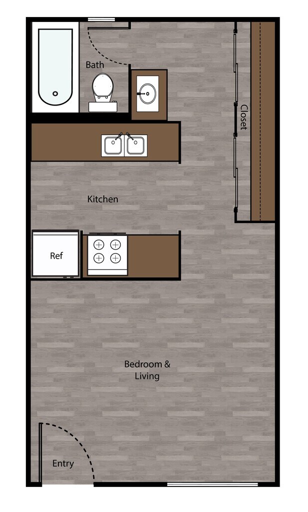 Studio, 1 Bath, 250 sq ftAvailable NowModel Gallery