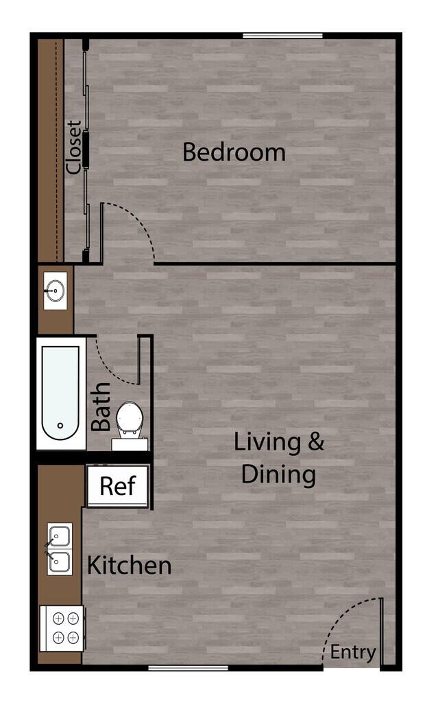 Studio, 1 Bath, 434 sq ftAvailable NowModel Gallery