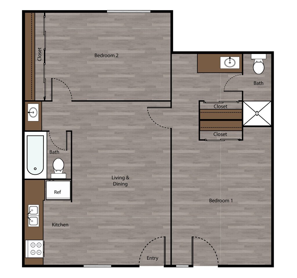 1 Bed, 1 Bath, 781 sq ftAvailable NowLargest 1 BedroomThis is the largest 1 Bedroom at this PropertyModel Gallery