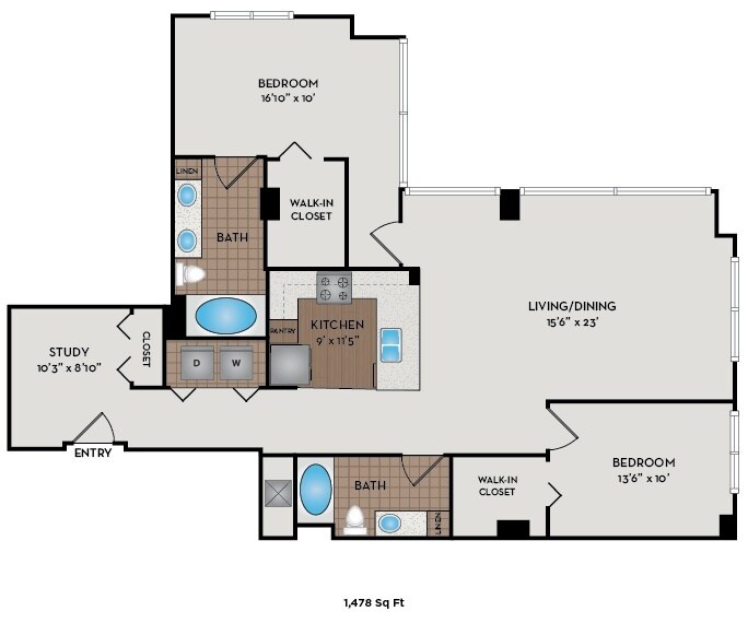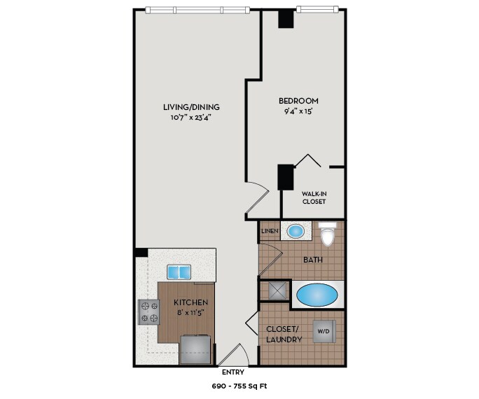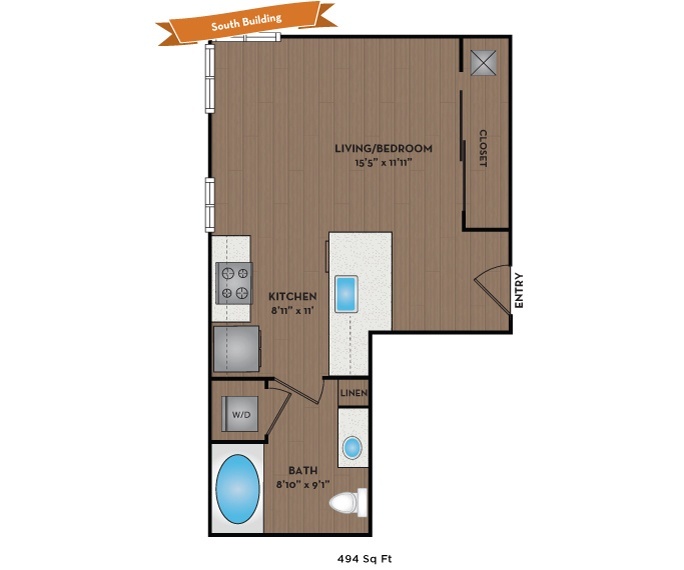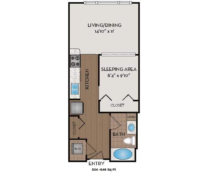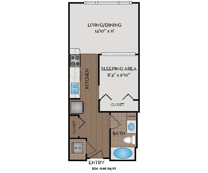 Studio, 1 Bath, 524-546 sq ftAvailable NowModel Gallery