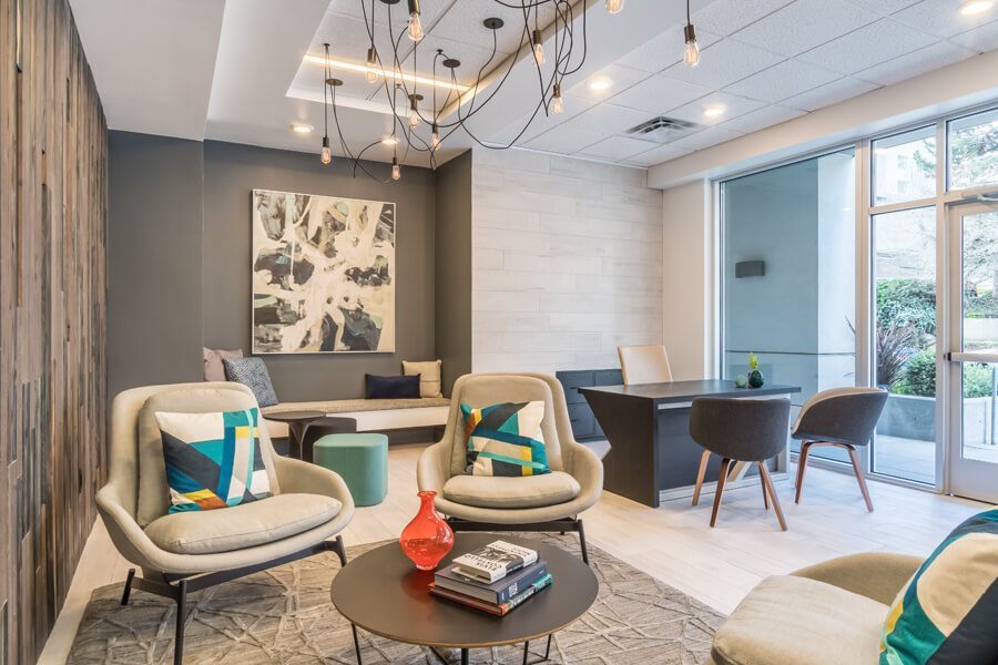 Metro 112 Apartments' homes epitomize modern living with electric vehicle charging stations and multiple work from home-friendly nooks including our entertainment suite, rooftop deck, media room, conference room and relaxation courtyard with meditation fountain and fireplace. Our apartments feature multiple finish options, floor-to-ceiling windows with solar shades and views of Mt. Rainier, built-in shelving and air conditioning included in most homes. We are now leasing our brand new South Building apartment homes! Located in downtown Bellevue near shops, restaurants, bars and within walking distance to Microsoft(R) and less than a 5 minute drive to Amazon(R). I-405, I-90 and 520 are conveniently close as well. Apartment features are available in select homes.