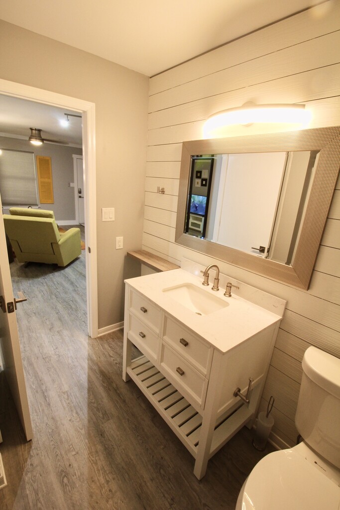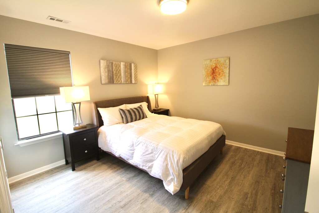 DOWNSTAIRS PLATINUM MODEL - STYLISH LUXURY! Large Granite Kitchen with built-in eating area for 3, Crown Moldings, Stainless Steel Appliances, Specialty lighting, luxury plank flooring throughout, dimmers, black out-cellular blinds, contemporary luxury furnishings, linens, down comforters and pillows, all housewares and appliances, washer and dryer in unit. Annual $1195 per month. Short term leasing. 6-11 months +$100, 4-5 mo +$200, 2-3 mo +$300 p/mo