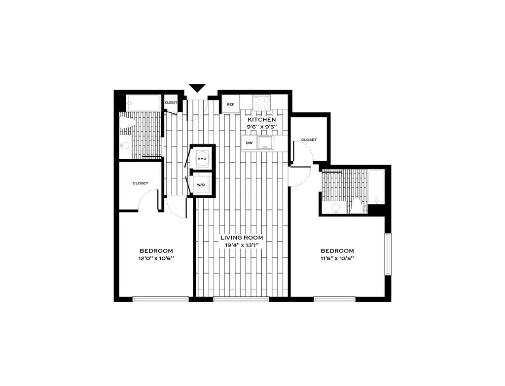 B2CC - Floorplan 2 Apartment Unit: 201Apartment Model: B2CC2 Bedroom, 2 Bath, 1090 sq ftAvailable January 8, 2026B2AC