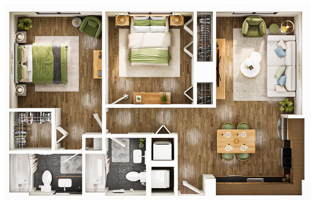 Studio to 2 Bedroom Apartments at Metro Parc currently range from $1,991 to $3,150