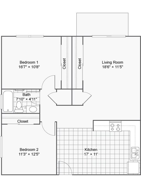 2 Beds, 1 Bath, 841 sq ftAvailable NowModel Gallery
