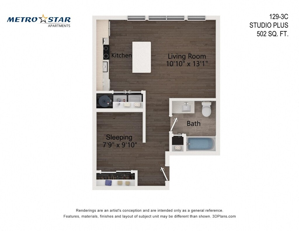 Studio Plus - Floorplan 1 Apartment Unit: 129-2CApartment Model: Studio Plus$2,292Studio, 1 Bath, 502 sq ftAvailable Now![]()