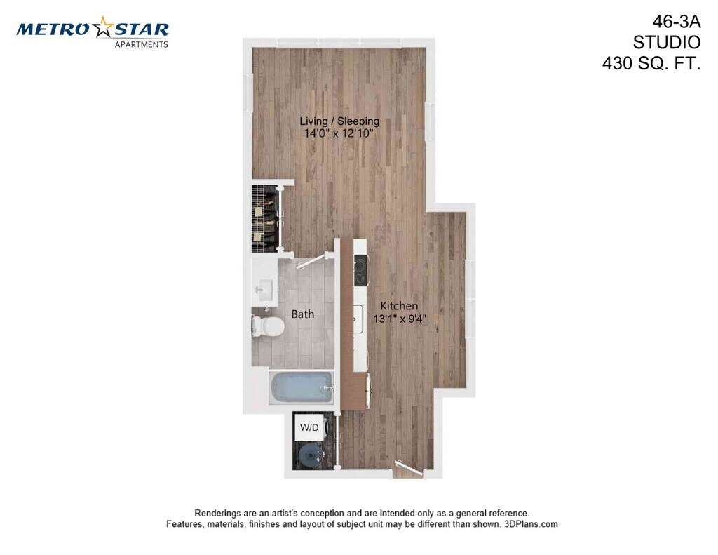 Studio - Floorplan 1 Apartment Unit: 46-3AApartment Model: Studio$2,222Studio, 1 Bath, 430 sq ftAvailable Now![]()