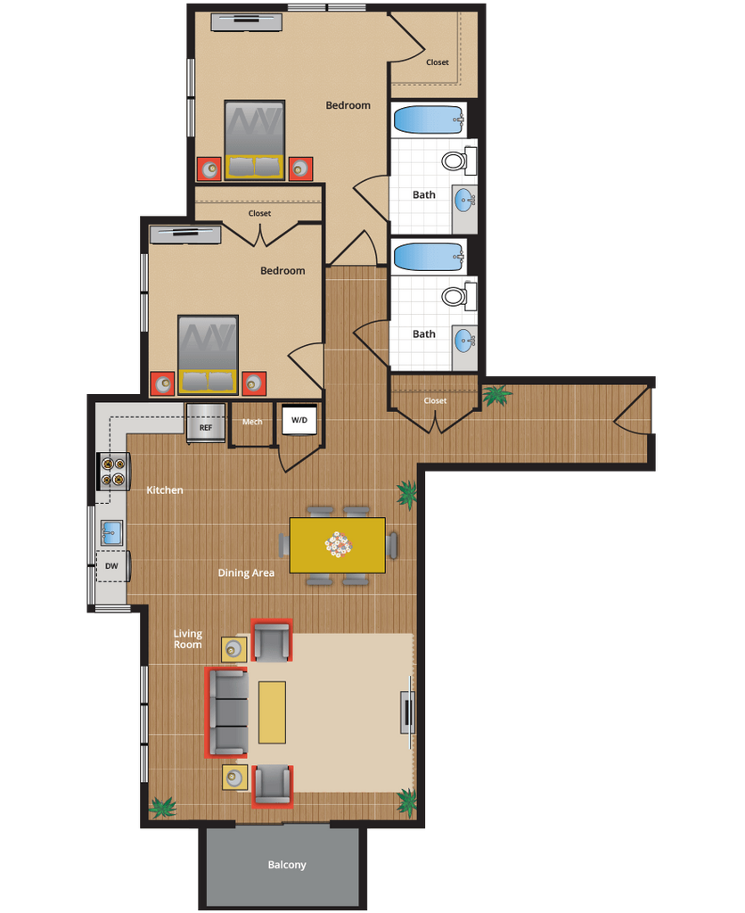 Apartment Model: Two Bedroom Two Bath Market$2,4502 Bedroom, 1 Bath, 1126 sq ftAvailable Now![]()