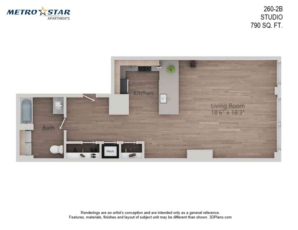 Studio, 1 Bath, 760-775 sq ftModel Gallery