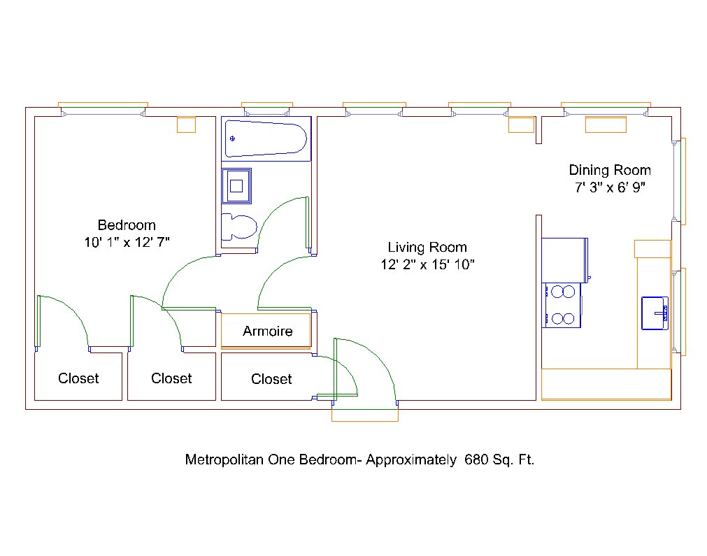 1 Bed, 1 Bath, 580 sq ftAvailability Details
