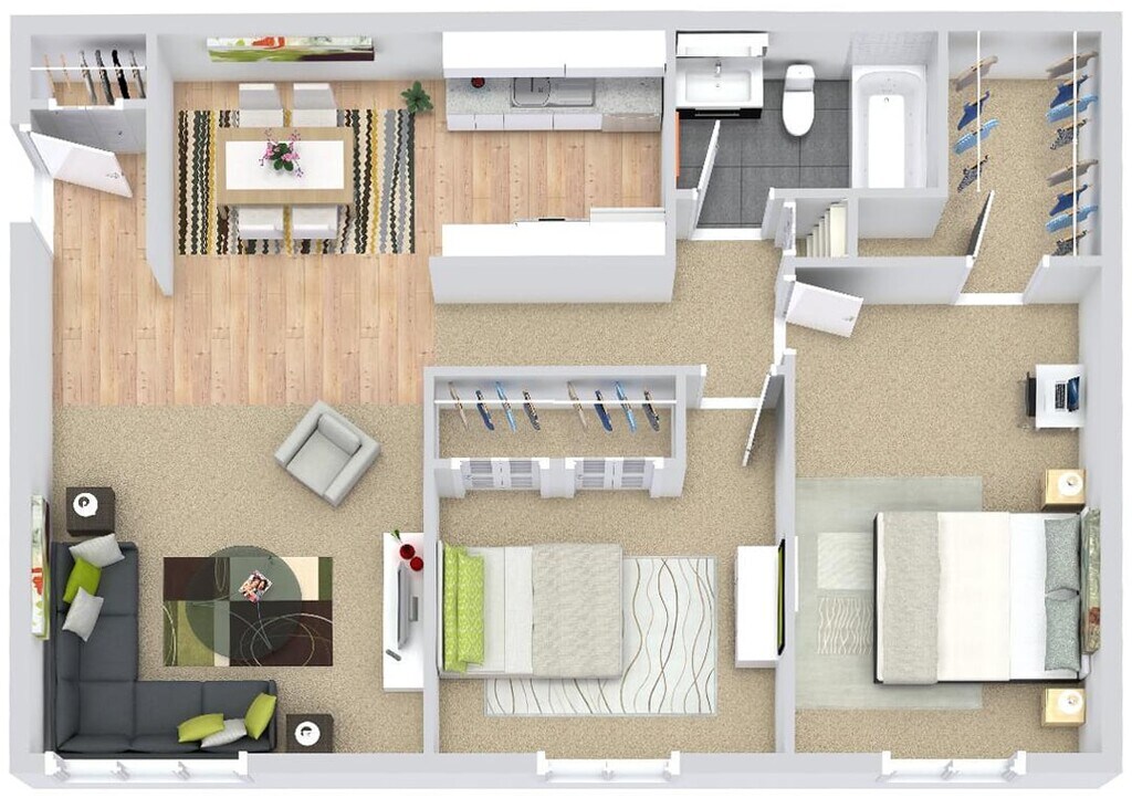 2 Beds, 1 Bath, 820 sq ftModel Gallery