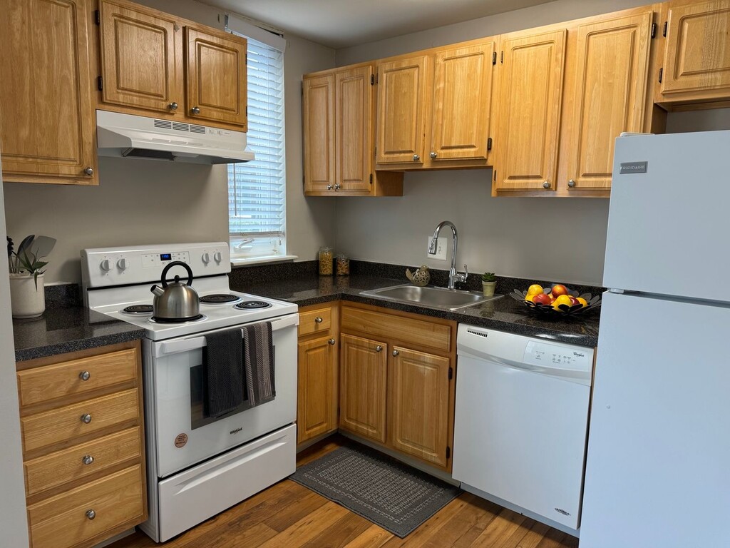 A cozy one bedroom, one bathroom apartment home.