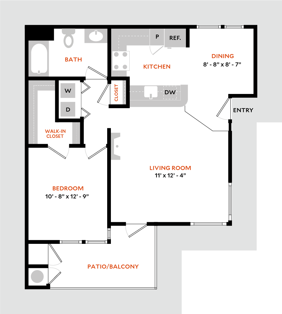 1 Bed, 1 Bath, 864 sq ftModel Gallery
