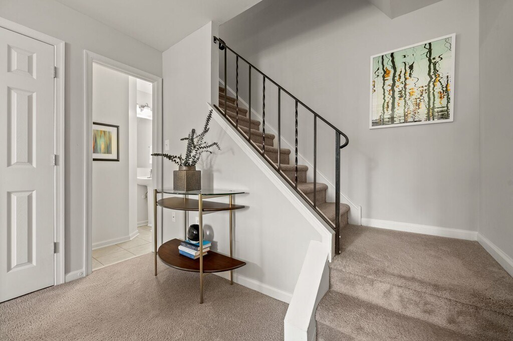 Spacious and modern two bedroom, one and a half bathroom townhome featuring stainless steel appliances, a full-sized washer/dryer, and a spacious layout.