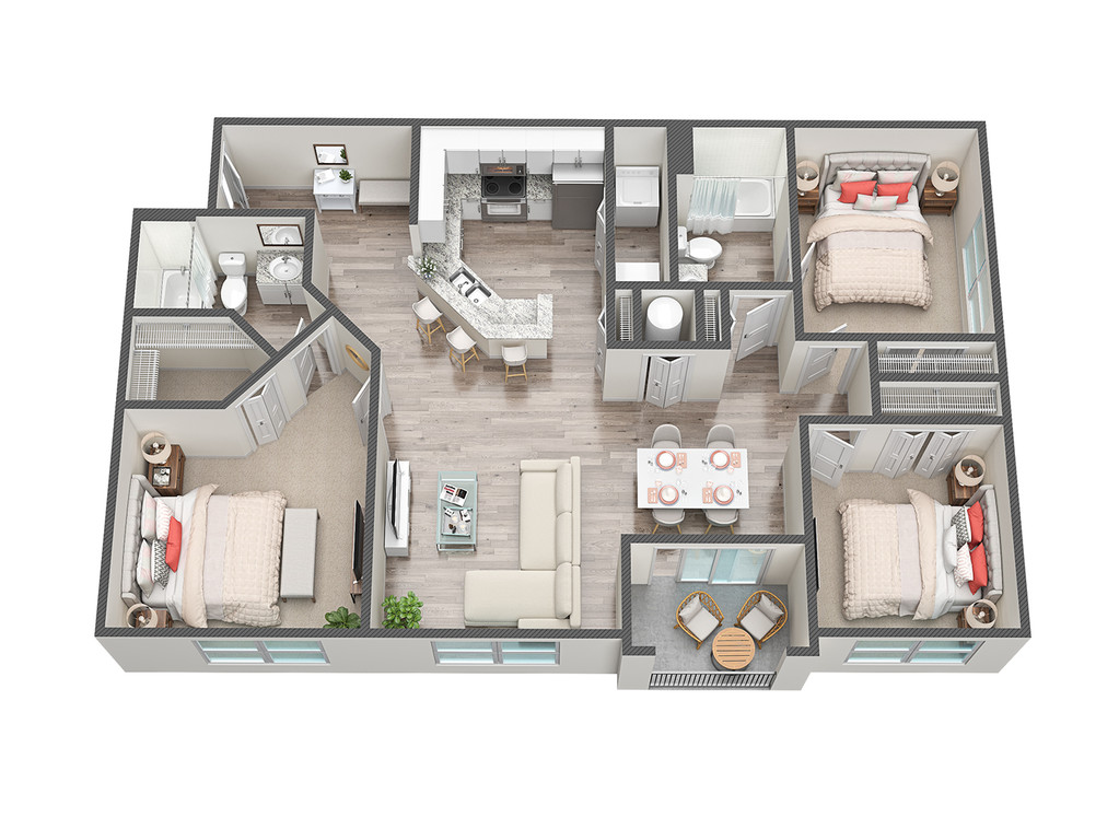 3 Beds, 2 Baths, 1210 sq ftAvailable NowModel Gallery