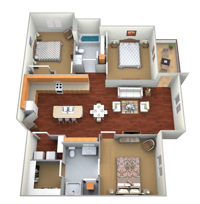 Apartment Model: 2 Bedrooms, 2 Bathrooms$1,4802 Bedroom, 2 Bath, 1130 sq ftAvailable NowFloorplansPhotos![]()