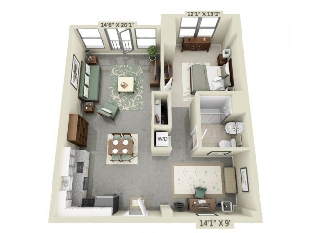 One Bedroom Mezzo Modern - Floorplan 1 One Bedroom Den