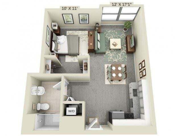 Studio, 1 Bath, 587-736 sq ftTotal Monthly PriceAvailable NowModel Gallery