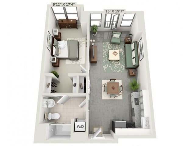 Studio - Floorplan 2 Apartment Unit: 313Apartment Model: Studio$2,887Studio, 1 Bath, 676 sq ftAvailable Now1 Bedroom