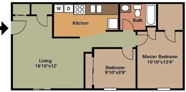 2 Beds, 1 Bath, 867 sq ftAvailable Nov 1Largest 2 BedroomThis is the largest 2 Bedroom at this PropertyModel Gallery