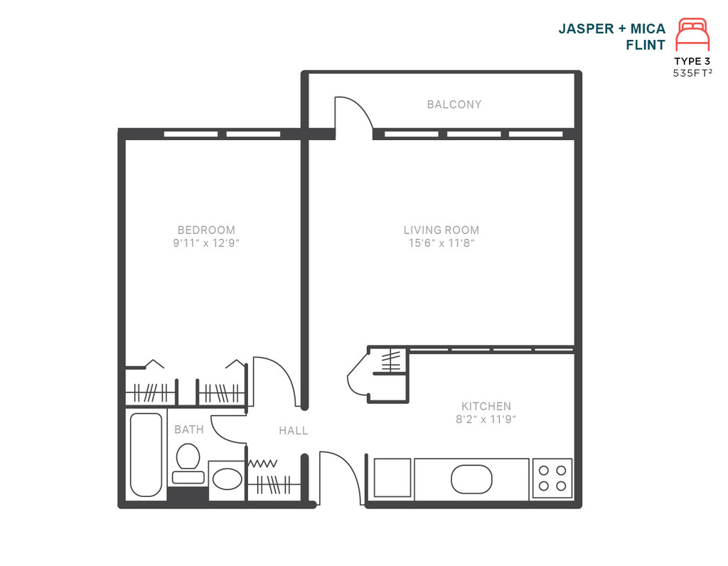 Apartment Model: Flint 1_31 Bedroom, 1 Bath, 535 sq ftAvailable NowFloorplansPhotos![]()