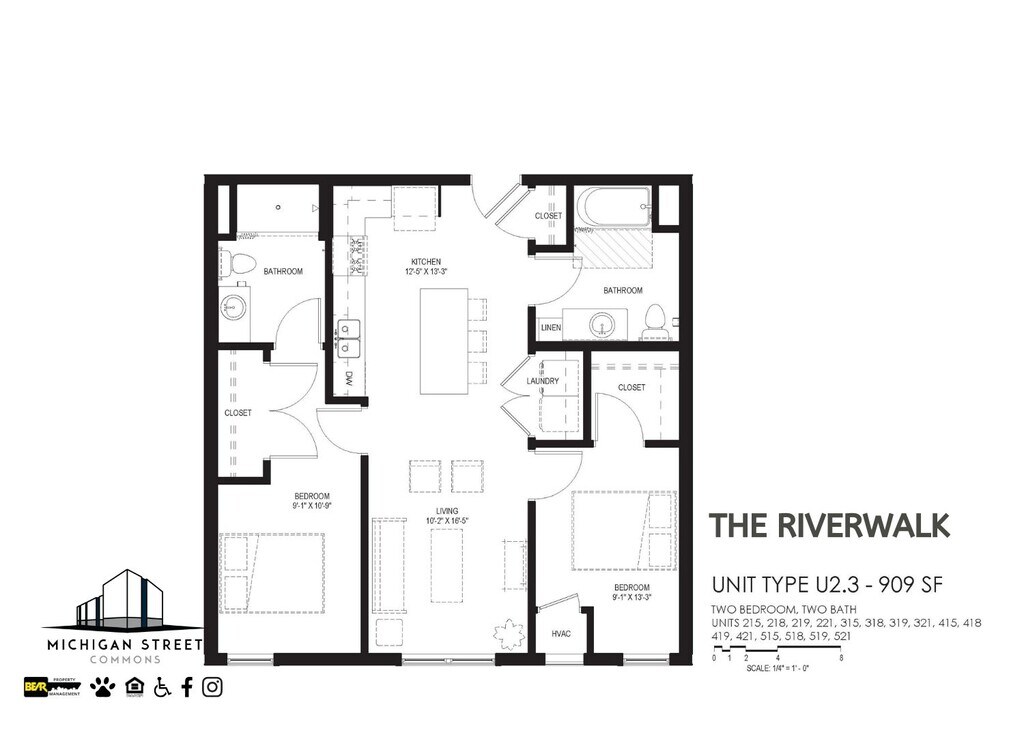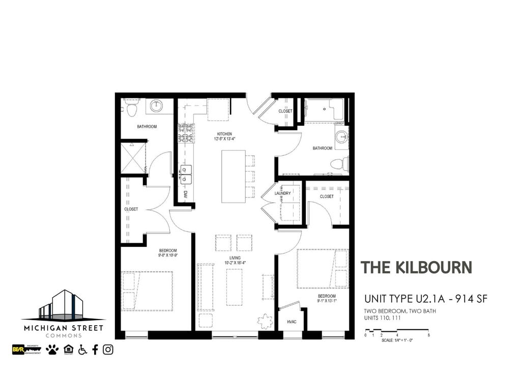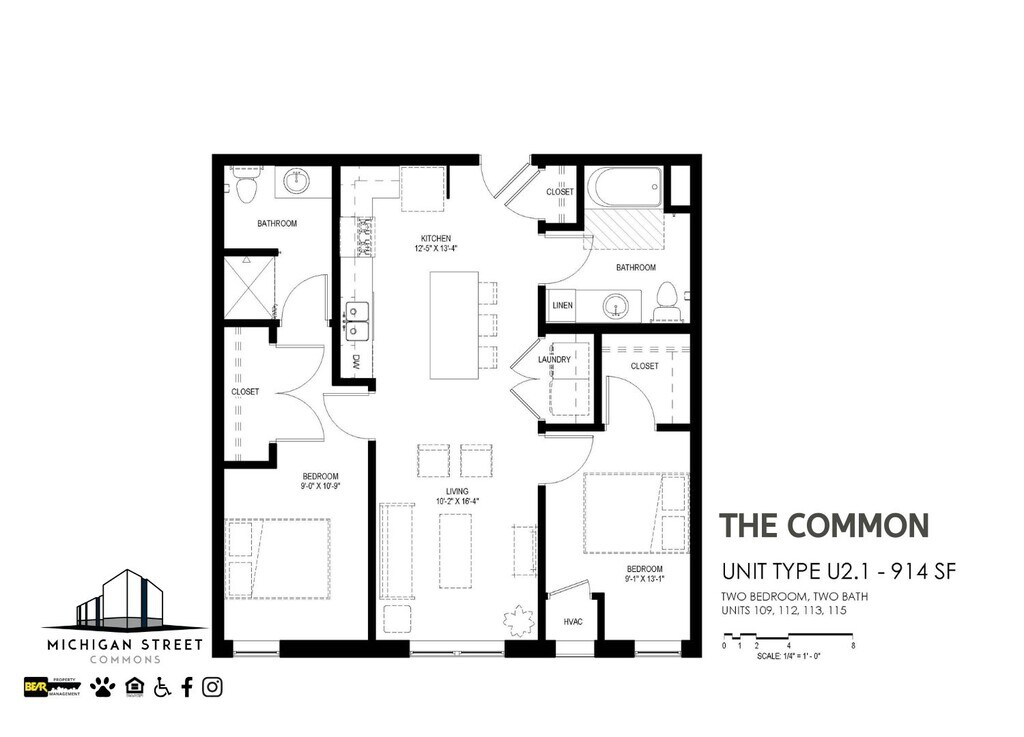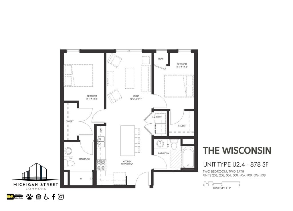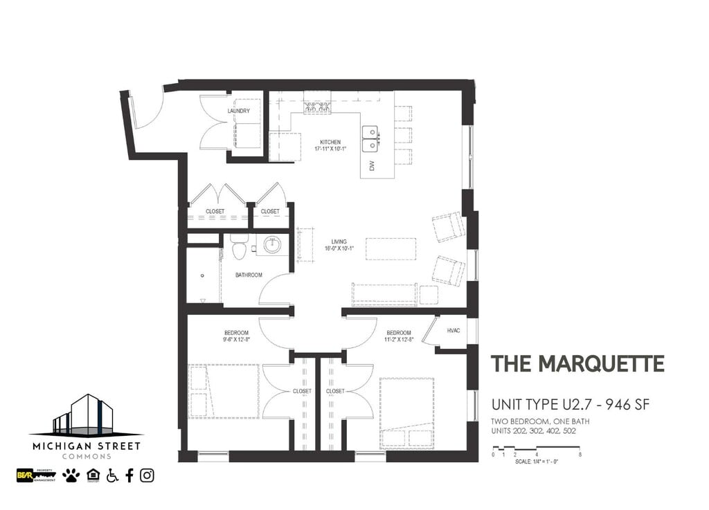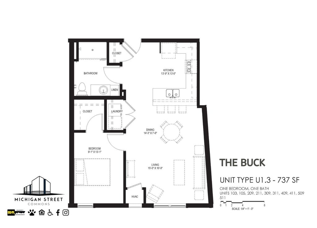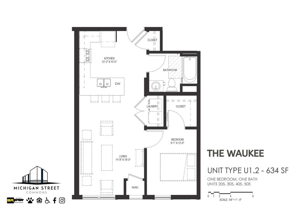 1 Bedroom to 2 Bedroom Apartments at Michigan Street Commons currently range from $961 to $1,376