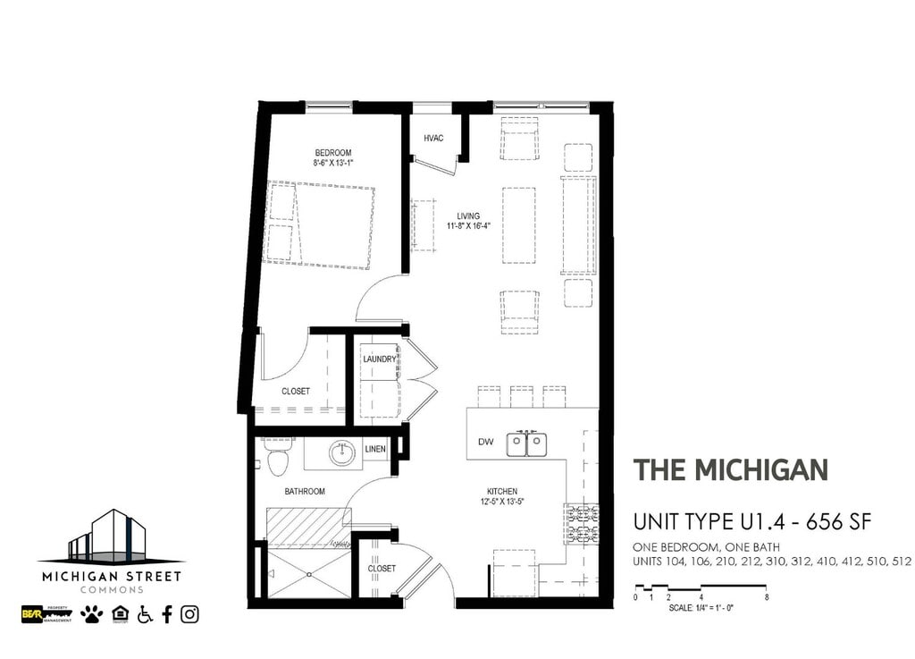 The Michigan - Floorplan 1 Apartment Unit: 104Apartment Model: The Michigan$1,3761 Bedroom, 1 Bath, 656 sq ftAvailable April 8, 2026Apartment Unit: 310Apartment Model: The Michigan$1,3761 Bedroom, 1 Bath, 656 sq ftAvailable April 8, 2026The Skyline