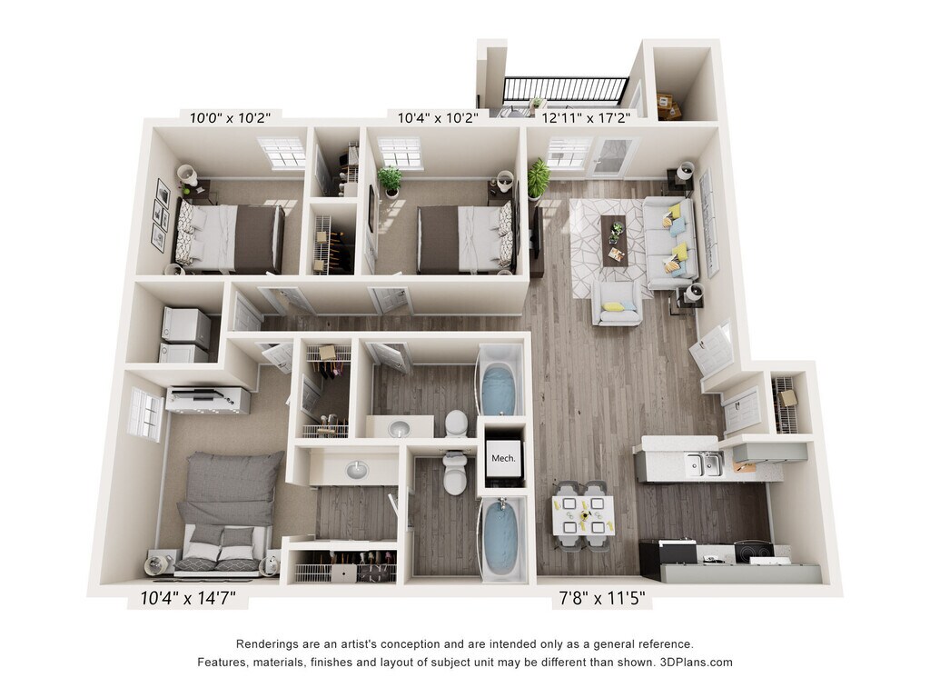 3 Beds, 2 Baths, 1275 sq ftAvailable NowModel Gallery