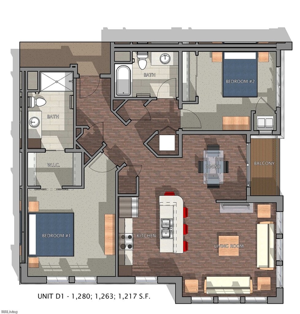 Apartment Model: Style D1$2,5502 Bedroom, 2 Bath, 1265 sq ftAvailable NowFloorplansPhotos![]()
