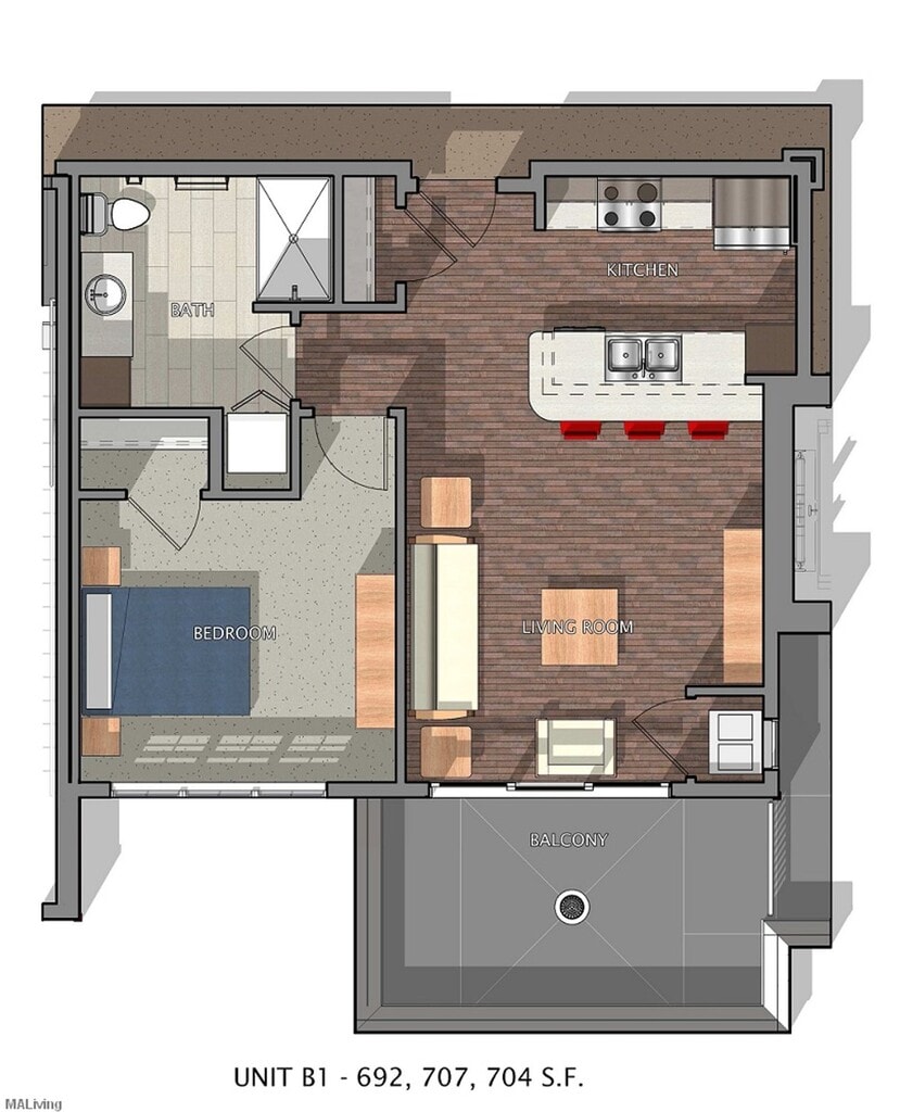 Style B1 - Floorplan 11 Apartment Unit: 7710-504Apartment Model: Style B1$1,8951 Bedroom, 1 Bath, 705 sq ftAvailable May 1, 20262 Bedrooms