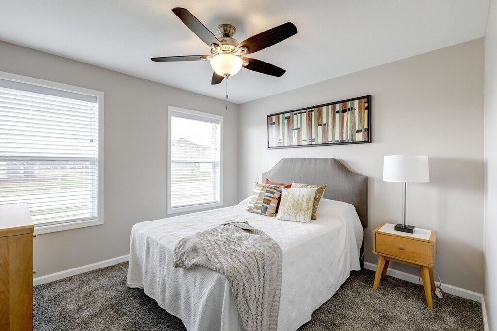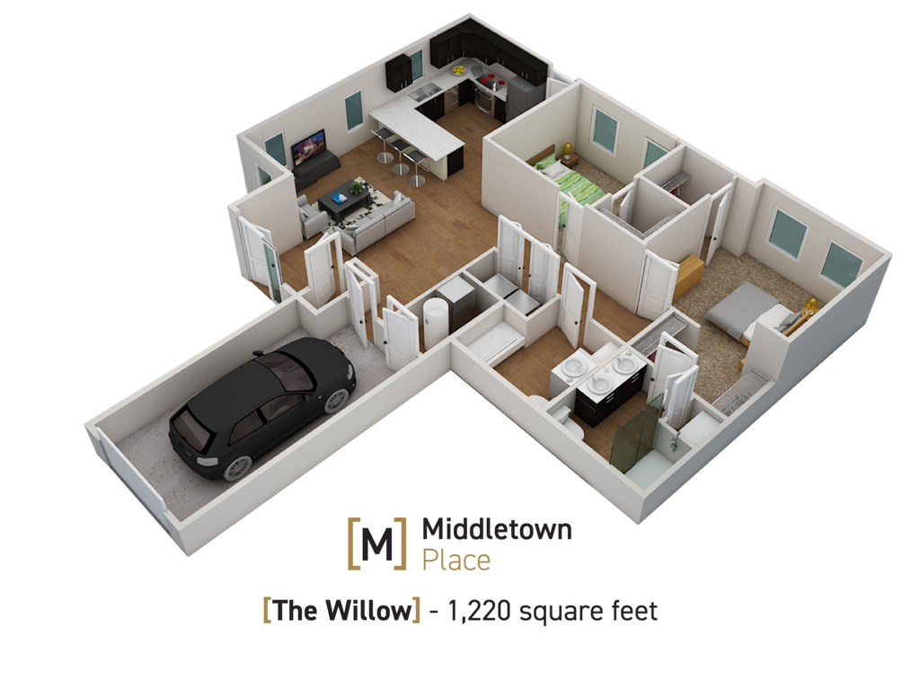 Welcome to Middletown Place, where you'll find luxury two and three-bedroom homes in the charming town of Mahomet, IL, within the Mahomet-Seymour School District. Our apartments are designed to provide a spacious and smart living option, with each unit featuring smart-home technology and a large floor plan with a modern, open-concept layout. The kitchens are equipped with quartz countertops, ample cabinet space, brushed nickel fixtures, stainless steel appliances, and an eat-in bar. The master suites are designed to fit a king-sized bed easily, and they boast substantial walk-in closets with built-in shelving, as well as bathrooms with dual vanities and walk-in showers. We've incorporated cutting-edge smart-home technology into our apartments, including camera-enabled doorbells, SMART thermostats, and video phone capabilities, all serviced over a dedicated, high-speed, 1GB fiber internet connection. As a bonus, we offer a Fitness Premier Membership with every lease, with terms and conditions that apply. We're also a pet-friendly community, allowing up to 2 pets with no breed or size restrictions. There is a $250 non-refundable fee per pet due at move-in and a $25/month pet rent per pet. Dogs will love our new dog park on the property! At Middletown Place, you can enjoy the best of both worlds - small-town living with modern luxuries. Contact us today to learn more about our community and schedule a tour of our beautiful homes.