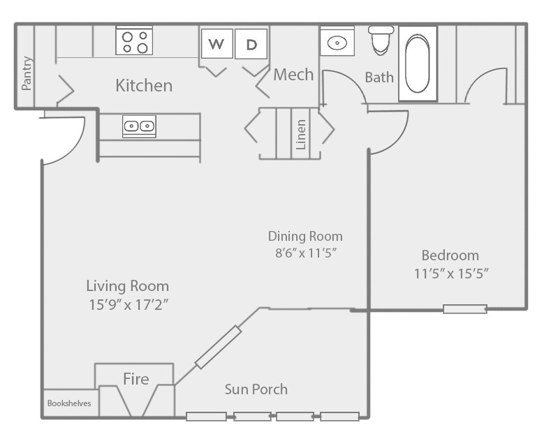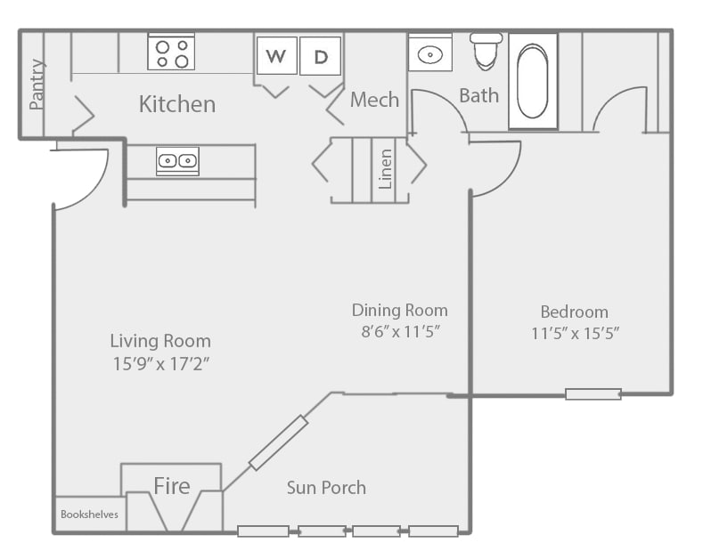 Apartment Model: The BradfordFrom $9641 Bedroom, 1 Bath, 885 sq ftAvailable Now![]()