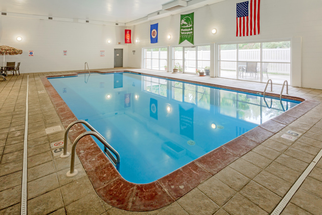 Welcome to Midland Terrace Apartments! Midland Terrace offers the serenity and beauty of surrounding lakes. Have a great workout in the exercise center or a swim in the indoor pool. Midland Terrace is conveniently located to both downtowns, on the busline and close to shopping, schools and a number of parks and lakes that will provide you with a range of outdoor activities. Come see your new home at Midland Terrace Apartments.