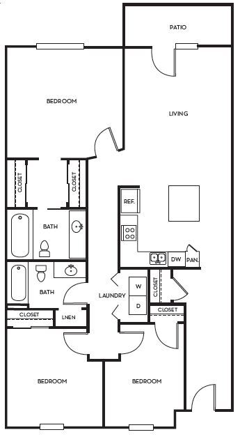 Apartment Model: Three Bed Two BathFrom $1,8353 Bedroom, 2 Bath, 1334-1613 sq ftAvailable Now![]()
