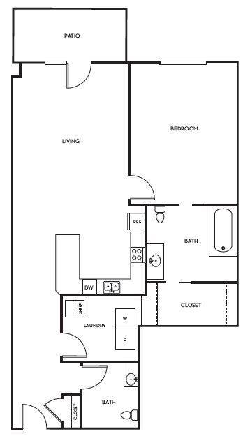 One Bedroom One Bath - Floorplan 3 2 Bedrooms