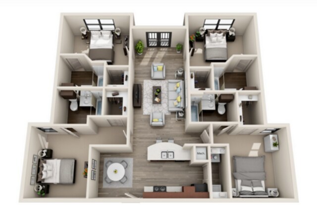 Apartment Model: 4x4 - D1 Standard4 Bedroom, 4 Bath, 1408 sq ftAvailable August 14, 2026![]()