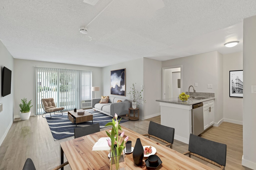 Offering pet-friendly studio, one and two-bedroom apartment homes. Midtown Apartment Homes is a luxury gated community located in the heart of Panorama City. Apartment interiors feature modern finishes such as new kitchens with granite countertops, stainless steel appliances, AC units, and wood-style flooring, granting the luxury of a home with the flexibility of a lease. Modern interiors are complimented with convenient amenities; this community offers 24/7 camera recording, a laundry facility, a fitness center, and a large outdoor pool.