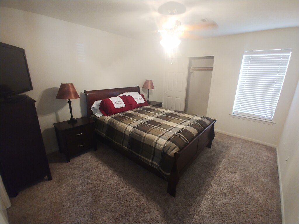 Excellent location. Very close to the A&M campus. Across from HEB and right behind Hastings, Target, Old Navy, and Freebird. Also very close to a park with basketball court and soccer fields. Directions: Take Holleman Drive from Texas Avenue heading west. Go about 200 yards and Midtown will be on the left hand side diagonally across from HEB. 4 bedroom / 3 bathroom 1700 sq. ft. two-story townhouses The shared bathroom is a large Hollywood bathroom with double vanities and wall-to-wall cabinets and drawers 300 to 600 sq. ft. larger than almost all other 4 bedroom places in town Cultured marble bathrooms Intrusion alarm Huge kitchen with walk-in food pantry All the appliances including microwave & washer and dryer Several extra storage closets upstairs and downstairs A large patio outside the back door where you can barbeque or hang out Ceiling fans, cable jacks and phone jacks in all the rooms...among other amenities About 1/2 mile from campus On the "Ring Dance" bus route #27 and the "Rudder" bus route #26 We are NOT a mega-complex. Only 42 townhouses total We pay the water bill and the intrusion alarm. After paying rent & ALL bills, your cost is still much less than even the dorms :-) EXCELLENT TEMPORARY SPECIAL.