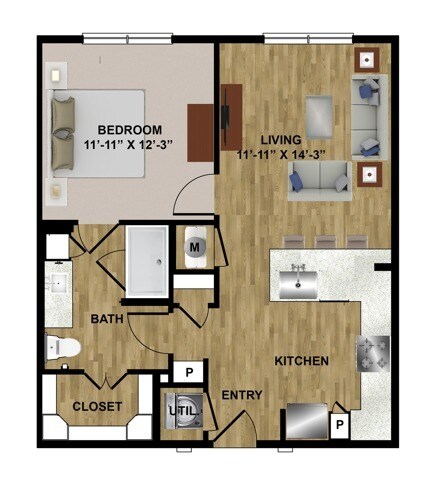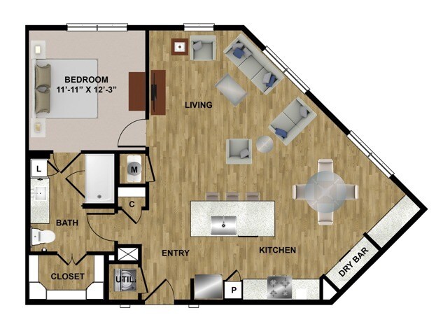 Apartment Model: ExpressionistFrom $1,3851 Bedroom, 1 Bath, 604-720 sq ftAvailable Now![]()