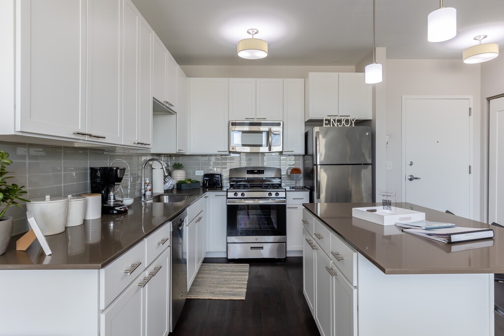 Midtown Square offers spacious one and two bedroom apartment homes, including some direct access apartment homes, in sophisticated and modern setting with amazing amenities and breathtaking views. Your new home will feature quartz kitchen counter tops, stainless steel appliances, in-unit washer/dryer, breakfast bar and large walk-in closets. Residents of Midtown Square will also enjoy a covered and heated garage parking, on-site retail, a business center, club room, Wi-Fi coffee lounge, bike storage, and 24 hour fitness center! Our community is pet friendly, and offers a dog washing station. Midtown Square provides easy access to shopping, dining, and entertainment in the area. We are located within walking distance to the Glenview Metra train station that will take you to downtown Chicago in less than 30 minutes. Choose Midtown Square Apartments today to experience luxury living at its best!