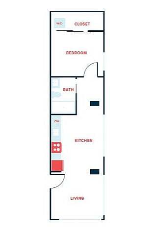 Studio, 1 Bath - Apt F - Floorplan 1 ![]()