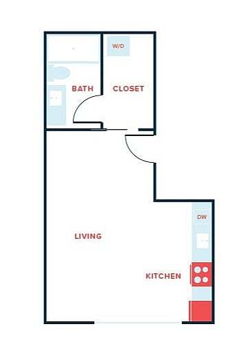 Apartment Model: Studio, 1 Bath - Apt E (Income Qualified)From $1,630Studio, 1 Bath, 447-484 sq ftAvailable Now![]()