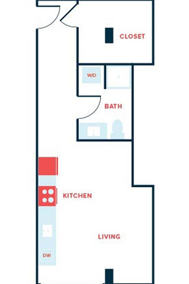 Apartment Model: Studio, 1 Bath - Apt FFrom $1,630Studio, 1 Bath, 468-484 sq ftAvailable Now![]()