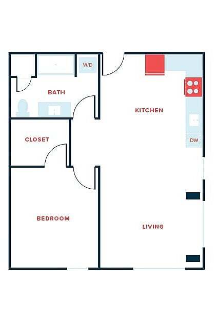 Apartment Model: Studio, 1 Bath - Apt DFrom $1,470Studio, 1 Bath, 481 sq ftAvailable April 8, 2026![]()