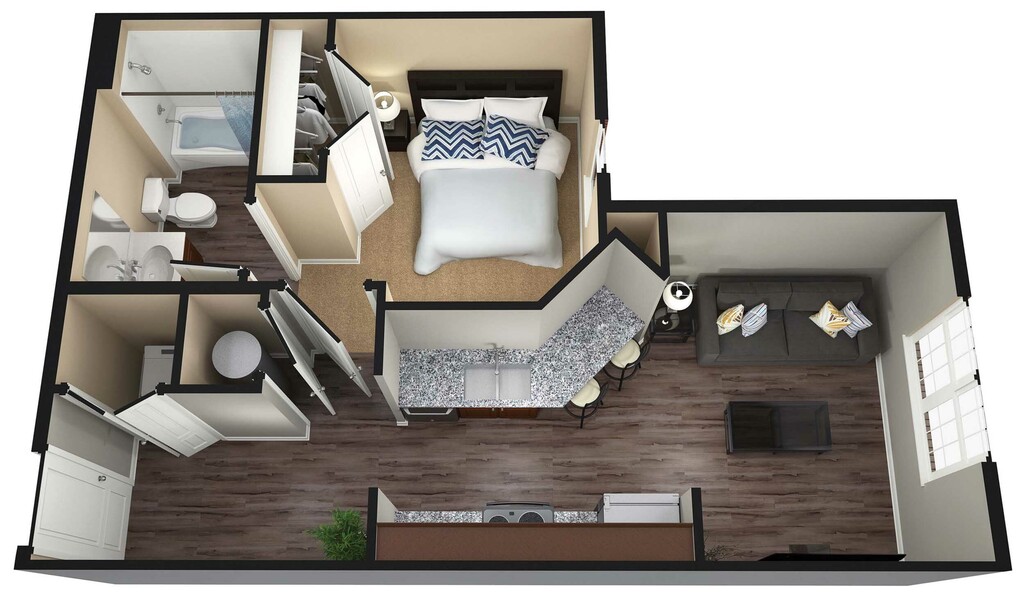 Apartment Model: StudioFrom $9991 Bedroom, 1 Bath, 465 sq ftAvailable Now![]()