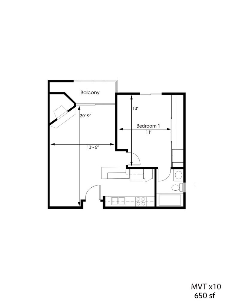 1 Bed, 1 Bath, 650 sq ftModel Gallery